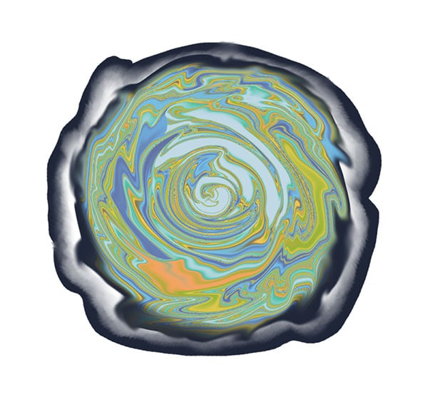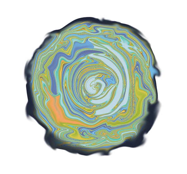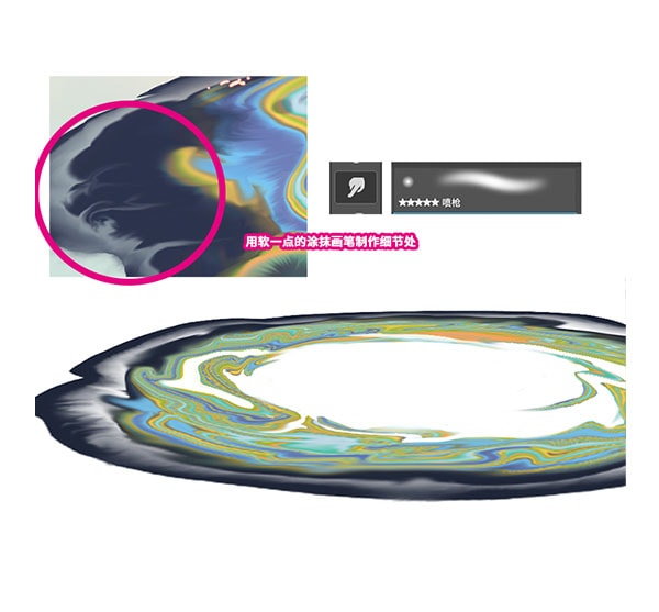 这张图的灵感主要来源于角色的名字“墨倾池”,所以希望能展现出一种在池中墨水倾泻而出的势态。 下面的过程简单说明了水纹绘制过程的原理。